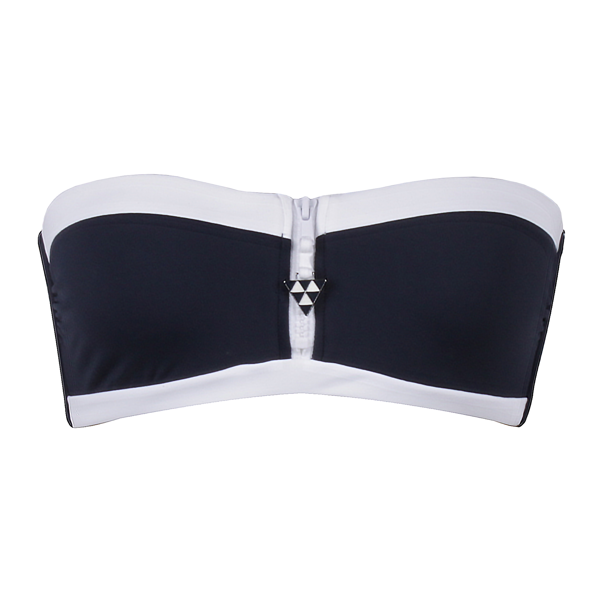 Colour splicing and Block Party zipper trim, this bandeau bustier has all it needs for subtle poolside chic.