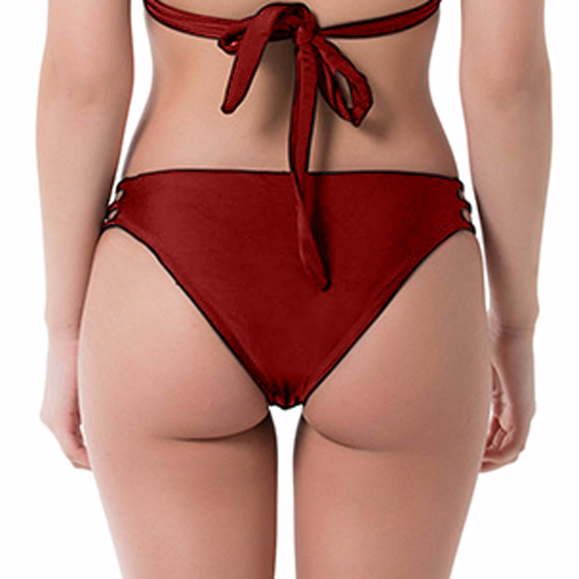 Featuring our famous bikini bottom with strappy sides. Features three bands at the hips with a seamless design for extra comfort and minimalizes digging into the hips. Available in our Cheeky cut for the not-so-shy bikini babe who loves to show some skin and reduce those tan lines.