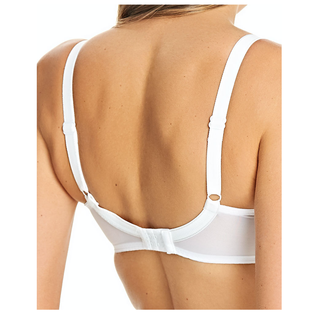Discover the Freya Fancies Balcony Bra available from a GG to K cup. The fuller bust bra style showcases beautiful White lace for a lingerie drawer essential, with a lined bottom cup designed to offer great shape and support, alongside deeper wires for extra coverage and comfort.
