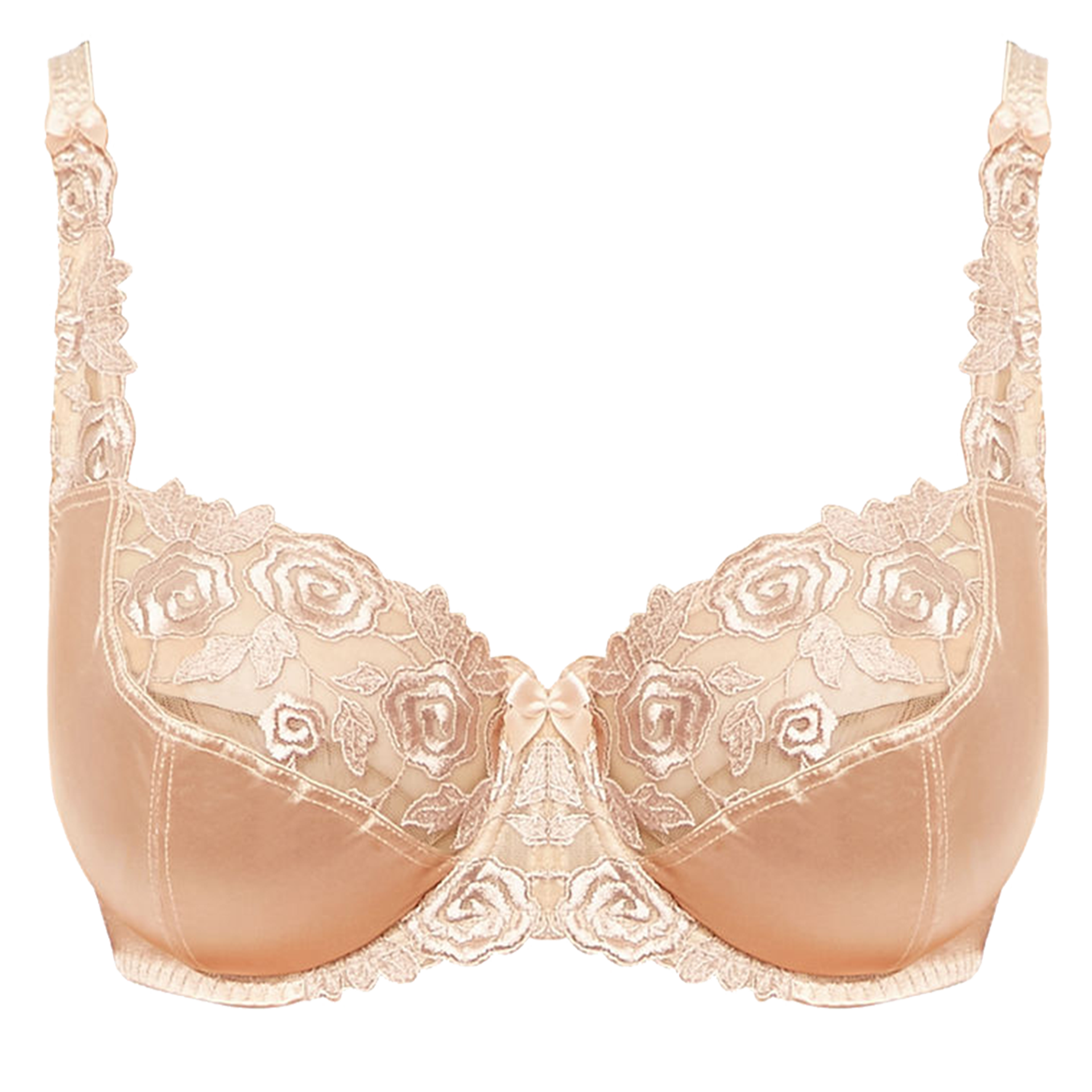 Fantasie's Belle lingerie collection features a Balcony Bra in gorgeous Nude shade, adorned with sophisticated embroidery with simplex cup offering good support. Finished with fixed fully adjustable straps in cup sizes B - FF.