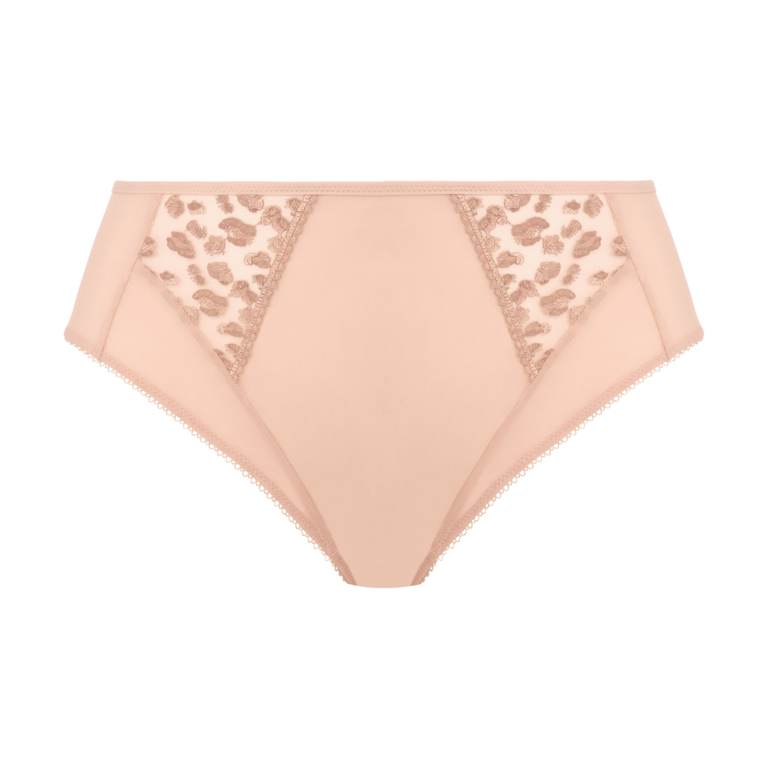 Add a touch of fun to your everyday lingerie with Elomi’s Namrah High Leg Brief, now in a feminine Pale Blush colourway. Offering perfect high-rise coverage, the briefs are adorned with stunning leopard print detailing across the front of the leg . Available in sizes M-4XL.