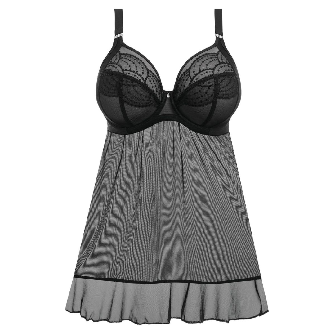 Perfect for those extra special occasions, feel elegant in Elomi's Priya Babydoll in a stylish Black hue. With a flattering stretch mesh, thigh length skirt and a flouncy frill on the bottom, you'll not only look good but you’ll feel good too! The cups provide a beautiful forward shape, good uplift and support, whilst adorned with luxurious embroidery to create a must-have flattering look