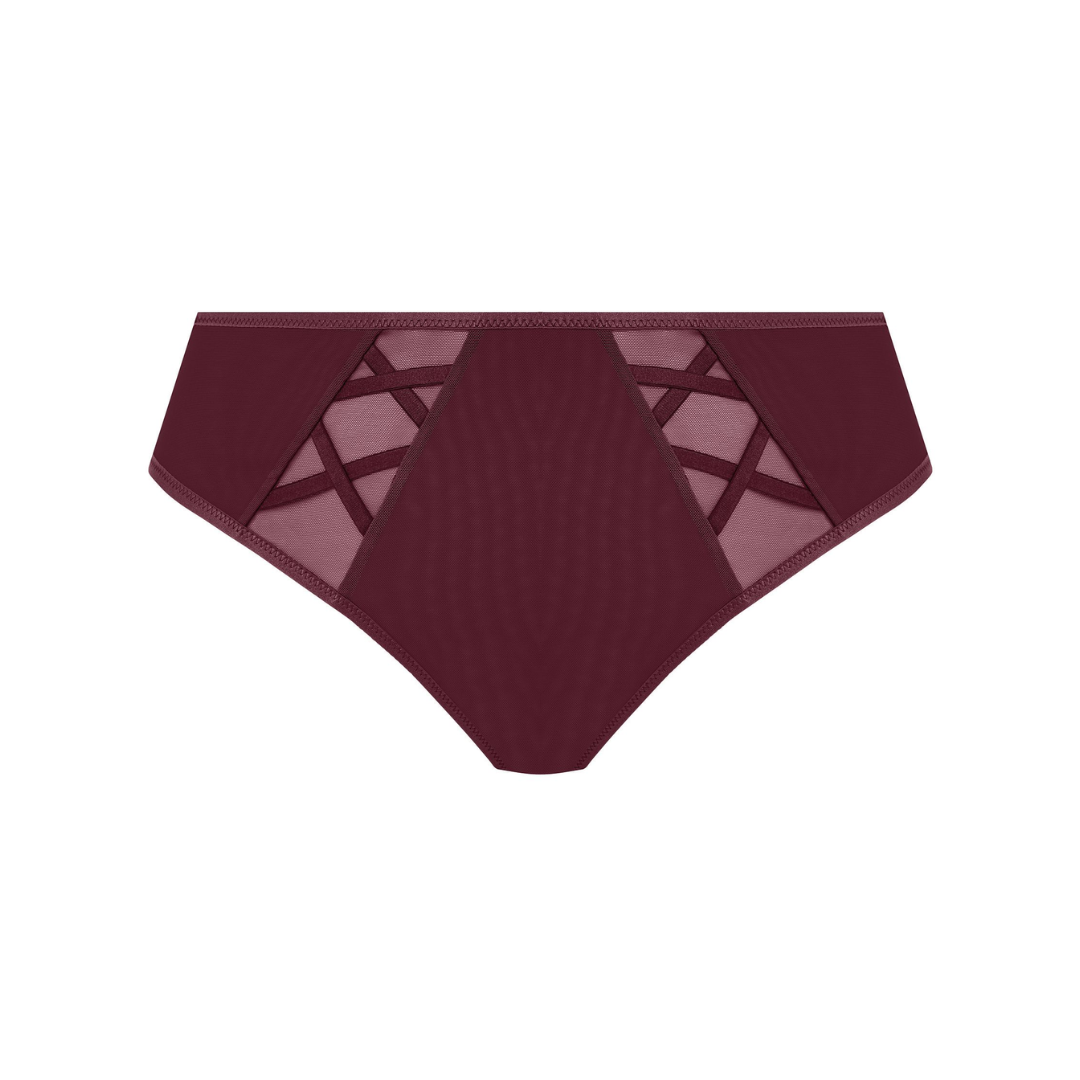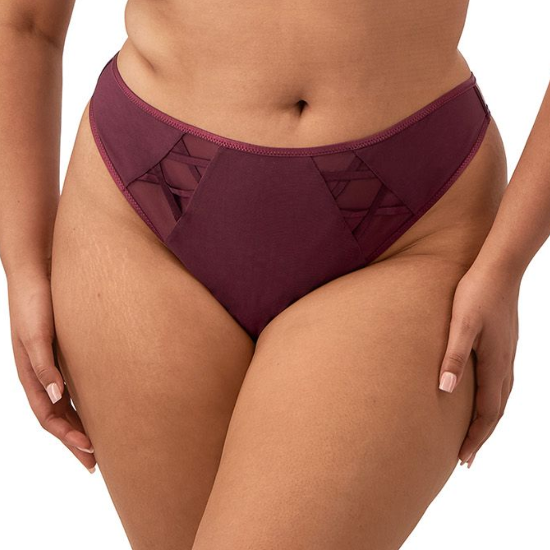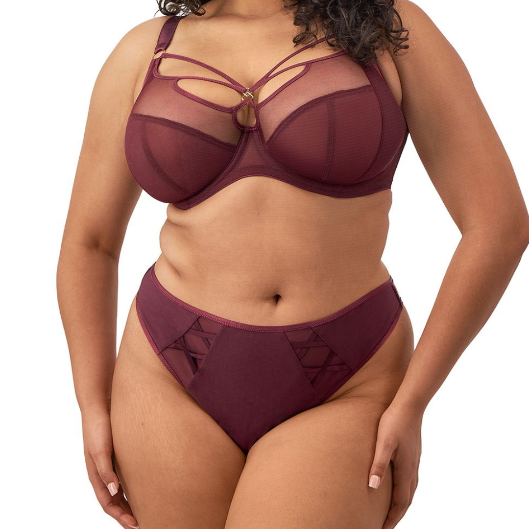 Elevate your lingerie game with the Elomi Sachi Thong our Cabernet hue. This seductive piece features double-layer stretch mesh and satin-look elastic detailing for a flawless fit and irresistible style. Complete your look with our matching Sachi Plunge Bra.