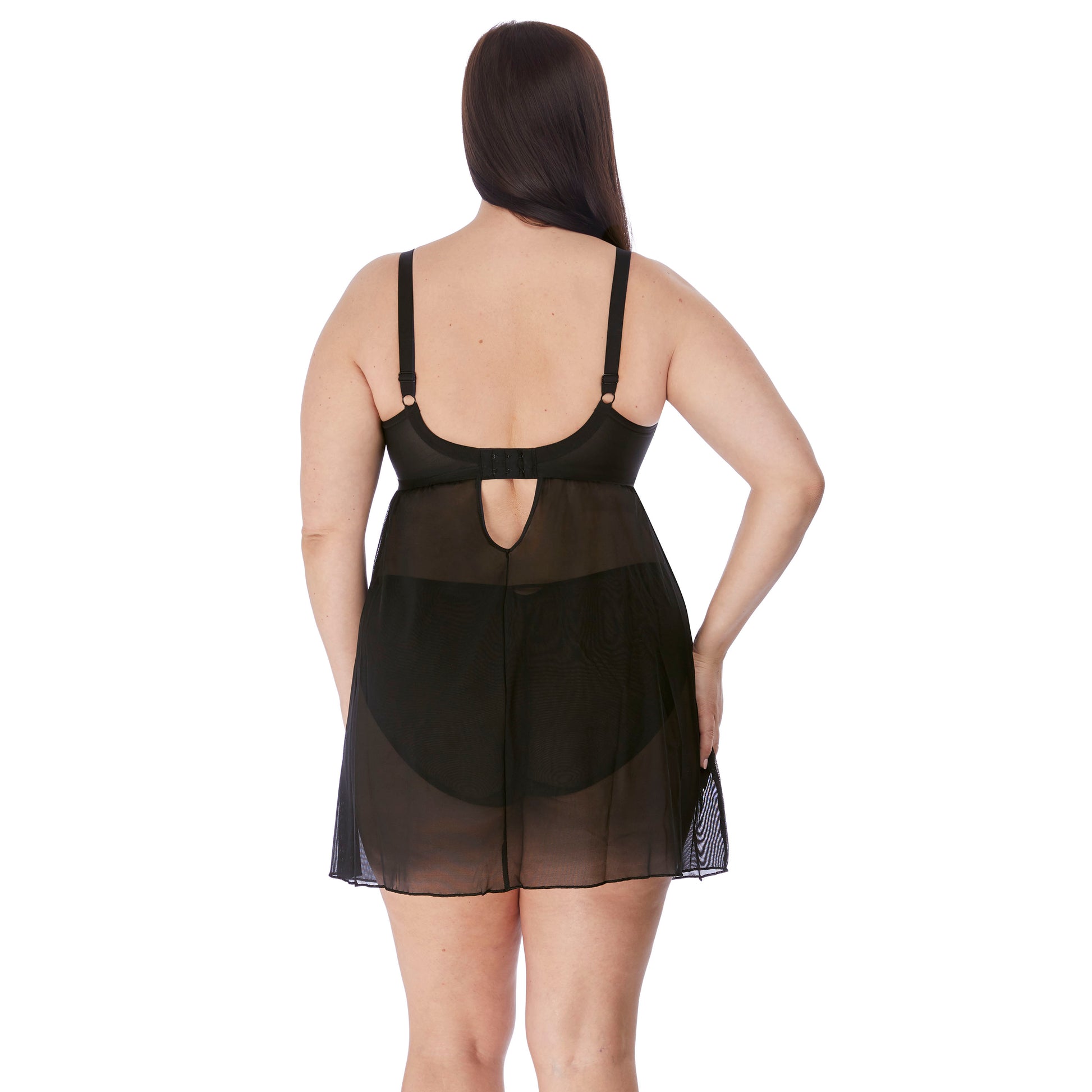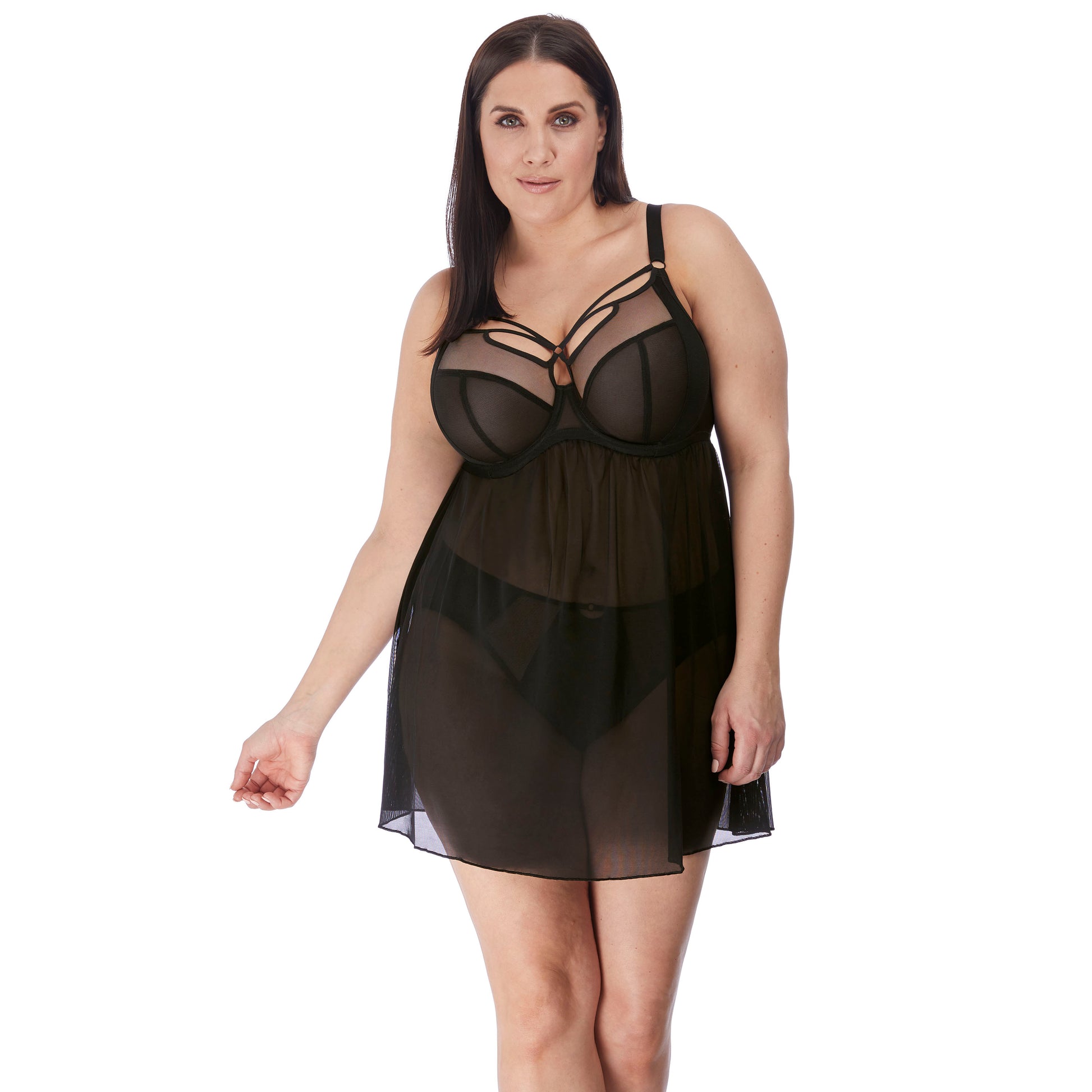 This Elomi Sachi baby doll has cups edged in sheer mesh with on-trend strapping across the bust. With a supportive bra to give you lift and shape, this sheer baby doll has a keyhole cut away at the back. This is a flattering and alluring cover up.